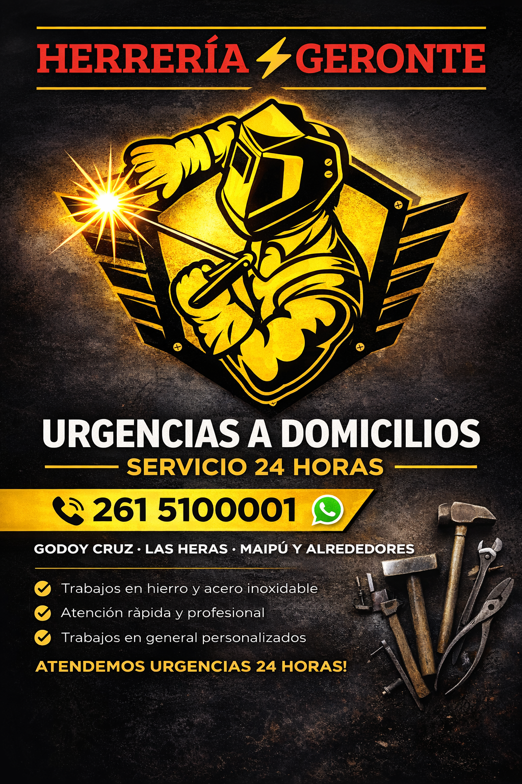 HERRERIA GERONTE REPARACIONES EN CALIDAD DE URGENCIAS LLAMAR YA URGENCIAS 24 HORAS A DOMICILIOS 261-510-0001